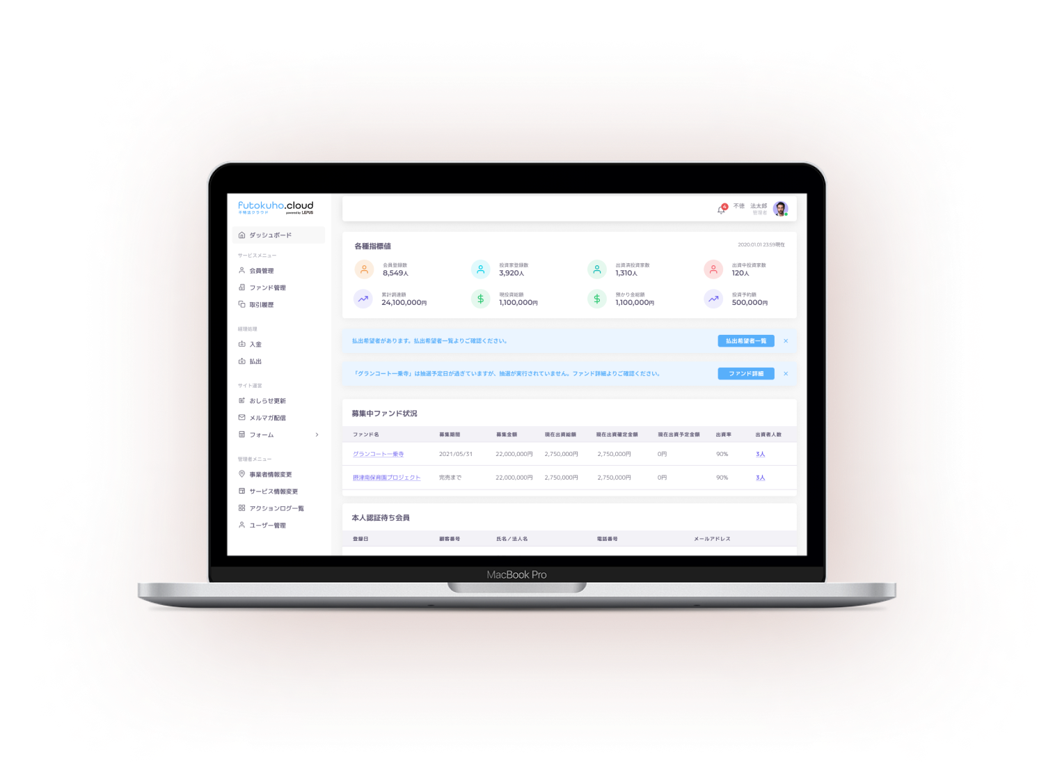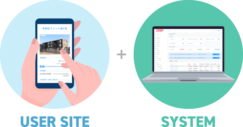 「会員・ファンドの募集・運用管理システム」までが一体となったシステムです。