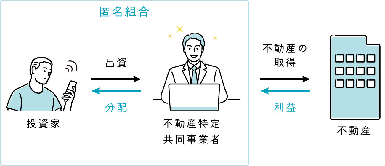 不動産クラウドファンディングは、不動産特定共同事業者が投資家から出資金を募り、集めた資金で不動産物件を取得し、運用・売却益によって利益を得て、投資家に還元する仕組みです。 これまでの不動産では借入金によって物件取得、自身で運営や売却といったハードルが高いものでした。一方で不動産クラウドファンディングでは、不動産を小口化することにより、投資家は1万円、10万円など少額での出資ができます。また募集されているファンドには、数ヶ月や1年と短い運用期間で償却するものも多くあります。ファンドによっては利益の優先分配、家賃保証などが用意されている場合もあり、なるべく元本を毀損しないよう工夫されています。
