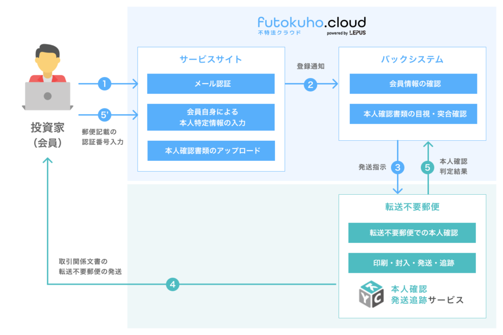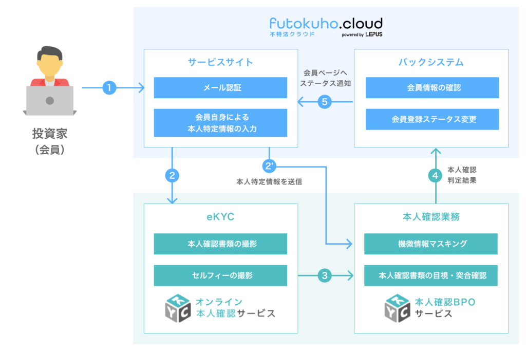 これにより、クラウドファンディングに参加する投資家は、現在提供しているハガキによる本人確認(KYC)にくわえて、オンラインで全て完結する本人確認方法『eKYC』を選択できるようになりました。