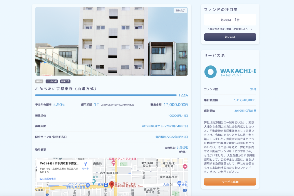 ※「ファインディングファンド」は定期的にスタッフが調査し、情報を集めています。そのため、最新の情報と差異がある場合がございます。